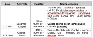 • mediu. In fiecare zi vom parcurge ¬45Km (max 1000m+ dif nivel) pe drumuri de macadam si asfalt.